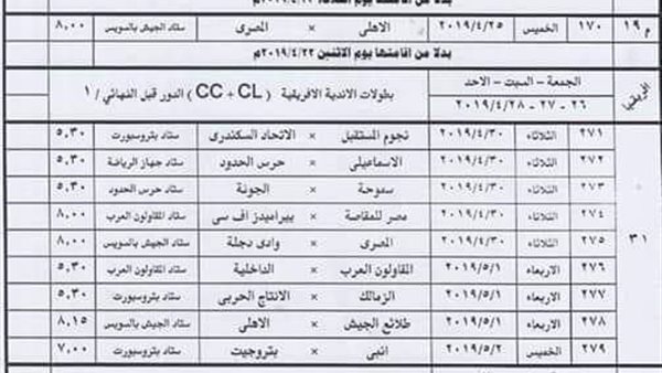 الزمالك يواجه بيراميدز فى الدورى 23 أبريل والأهلى مع المصرى يوم 25