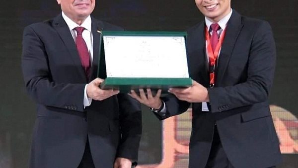 الرئيس السيسي يكرم طالب بجامعة الفيوم