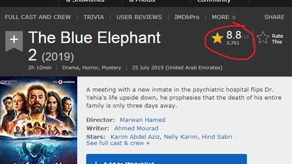 فيلم "الفيل الأزرق 2" يتراجع تقييمه على الموقع العالمي imdb..و تعرف على أراء المشاركين 26/10/2019 05:03 م