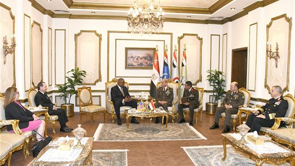 إلتقى الفريق أول - محمـد زكى القائد العام للقوات المسلحة وزير الدفاع والإنتاج الحربى بالسيد - لويد أوستن وزير الدفاع الأمريكى والوفد المرافق له