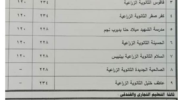 أعلنت البوابة الإلكترونية لمحافظة الشرقية عن الحد الأدنى لكل قسم من أقسام التعليم الفني صناعي، زراعي، تجاري، ومدارس التعليم والتدريب المزدوج
