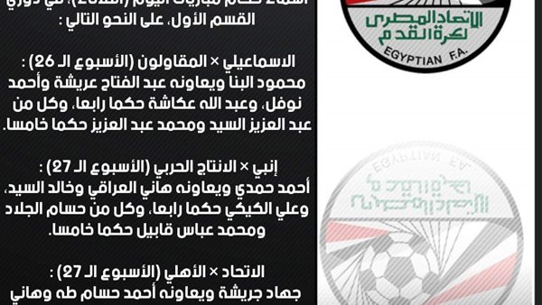 تعرف على حكام مباريات اليوم فى الدوري الممتاز