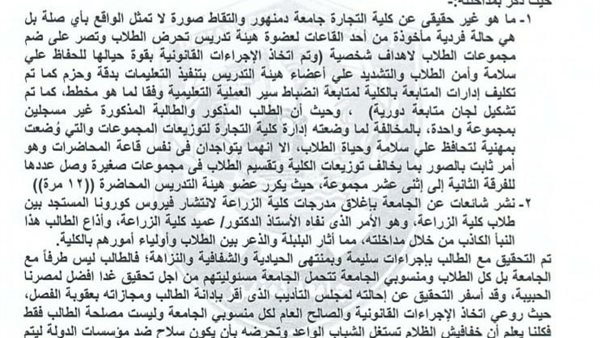 انتقد إجراءات مواجهة كورونا بالجامعة.. رد تجارة دمنهور على الجدل المثار بشأن فصل الطالب مصطفى شعلان 28/12/2020 03:37 م