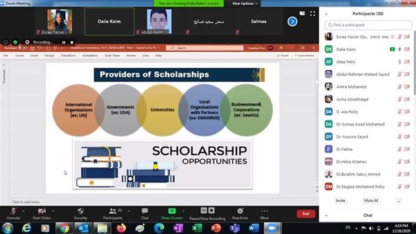 جامعة حلوان تنظم ويبينار عن كيفية التقدم للمنح الدولية