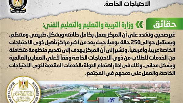 انتشر في بعض المواقع الإلكترونية وصفحات التواصل الاجتماعي أنباء بشأن إغلاق مركز العاشر من رمضان لتأهيل ذوي الاحتياجات الخاصة، وقد قام المركز الإعلامي لمجلس الوزراء بالتواصل مع وزارة التربية والتعليم والتعليم الفني، والتي نفت تلك الأنباء، مُؤكدةً أنه لا صحة لإغلاق مركز العاشر من رمضان لتأهيل ذوي الاحتياجات