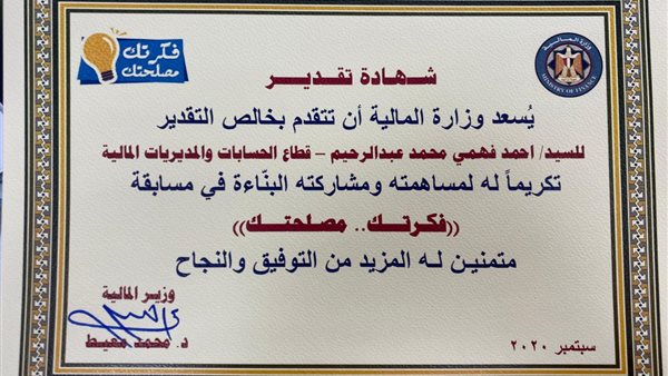 المالية تكرم مدير إدارة الحسابات بسفاجا فى البحر الأحمر