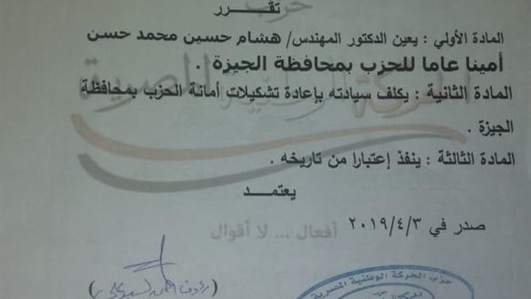 رئيس الحركة الوطنية يكلف أمناء المحافظات بتحفيز الناخبين للمشاركة في الاستفتاء علي التعديلات الدستورية 03/04/2019 05:02 م
