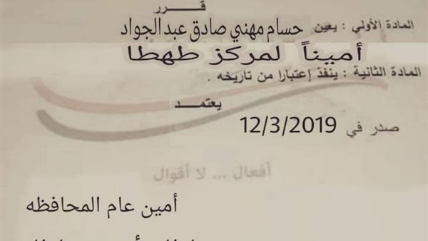 «الحركة الوطنية» بسوهاج يعين أمناء اللجان العامة بأمانة مركز وقسم بندر طهطا