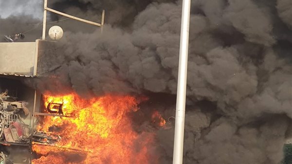 حريق مخزن سيارات على طريق صفط اللبن.. تعرف على التفاصيل