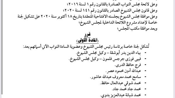 رئيس مجلس الشيوخ : استقبال الأعضاء المعينين لتسليمهم كارنيهات العضوية الأحد المقبل 22/10/2020 12:21 م