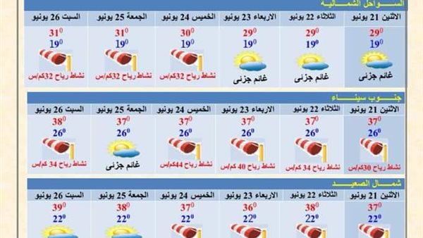 توقعات طقس اليوم الثلاثاء 22/6/2021..ودرجات الحرارة