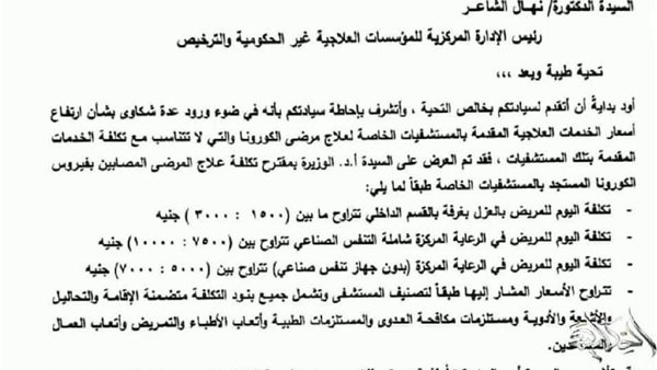 تعرف على أسعار العزل وعلاج فيروس كورونا التي أعلنتها وزارة الصحة بالمستشفيات الخاصة 02/06/2020 07:33 م