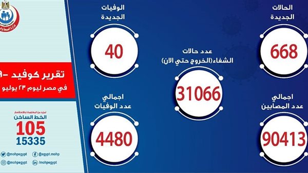 اصابات ووفيات كورونا «كوفيد-19» في مصر اليوم الاربعاء 22 يوليو | 667 اصابة و 41 حالة وفاة 22/07/2020 10:23 م