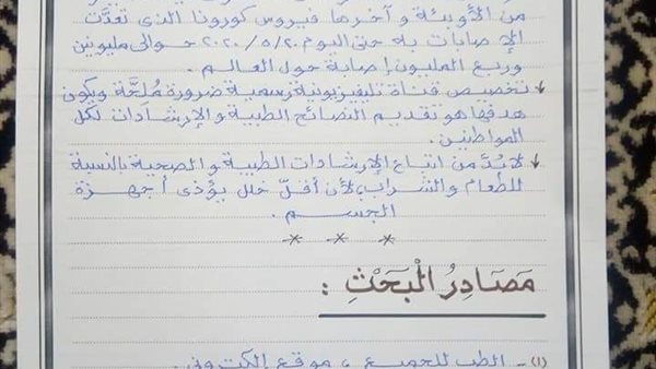 نموذج استرشادي جديد عن الصحة للصف الرابع الابتدائي مكتوب بخط اليد