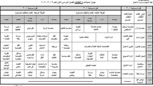 مواعيد امتحانات نصف العام بـ"كلية التجارة جامعة حلوان"