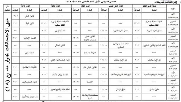 جامعة حلوان تعلن جدول امتحان كليتي الحقوق والخدمة الاجتماعية