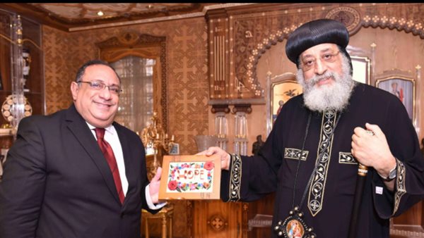 رئيس جامعة حلوان يمنح درع الجامعة للبابا تواضروس