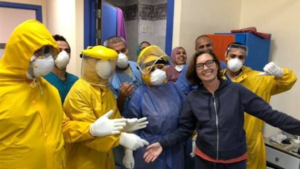 سائحة سويدية تحتفل في مستشفى العزل بالعجمي بعد شفائها من فيروس كورونا
