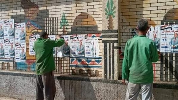 محلي المنيا يزيل صور المرشحين من أسوار المدارس حفاظا على جمال المدينة
