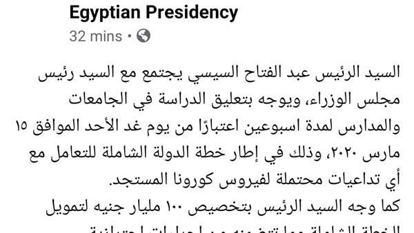 إجراءات للحد من انتشار كورونا .. إلغاء النشاط الطلابي وتقارير يومية وهذه أهم النصائح 14/03/2020 12:29 ص