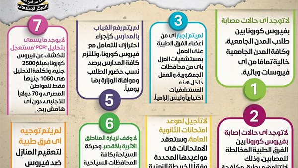 فيديو وانفوجراف.. الحكومة تنفي 7 شائعات وتكشف 8 حقائق تتعلق بـ«كورونا»