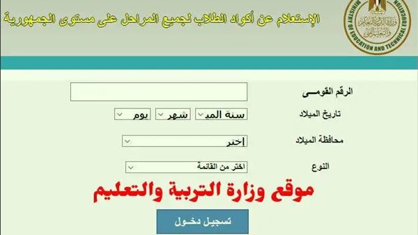 رابط الاستعلام مباشرة عن أكواد الطلاب 2021| بالرقم القومي لجميع المراحل studea.emis.gov.eg 22/12/2020 05:36 م