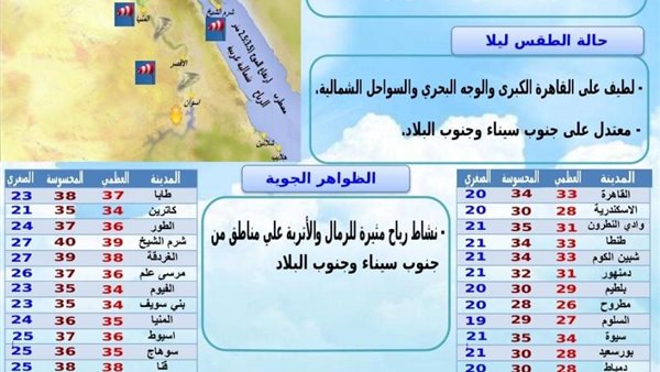 درجات الحرارة اليوم الثلاثاء الموافق 15 يونيو