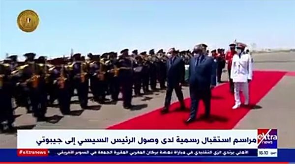 اقيمت مراسم استقبال رسمية.. السيسي يصل إلى جيبوتي في زيارة تاريخية