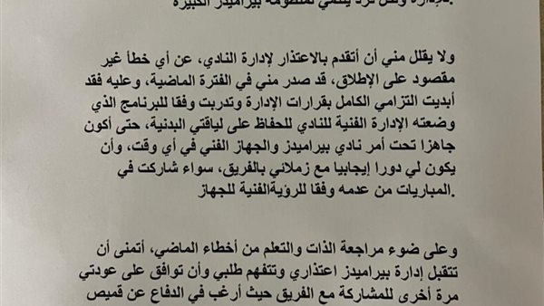 عبد الله بكري يتقدم باعتذار رسمي لإدارة بيراميدز