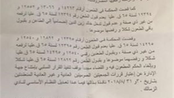 نص حكم القضاء الإداري الذى يرفض تعديلات لائحة الزمالك ولم يلزم وزير الرياضة