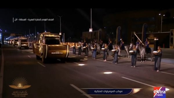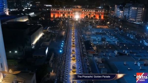 الرحلة الذهبية تنطلق من متحف التحرير.. الرئيس السيسي يشاهد مراسم نقل المومياوات الملكية 03/04/2021 08:14 م