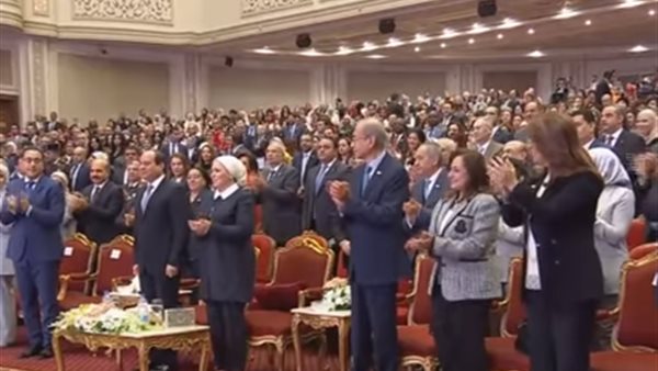 فيديو.. جميع الحضور في حفل تكريم المرأة المصرية يقفون شكرآ وتقديرآ للرئيس السيسي