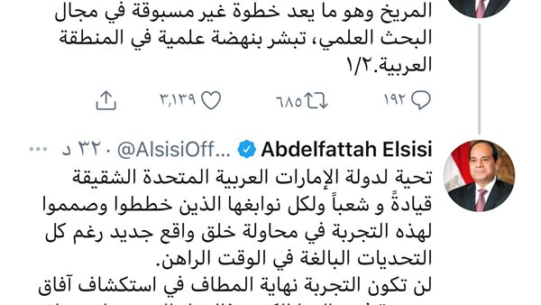 الرئيس السيسي: مسبار الأمل خطوة غير مسبوقة في مجال البحث العلمي