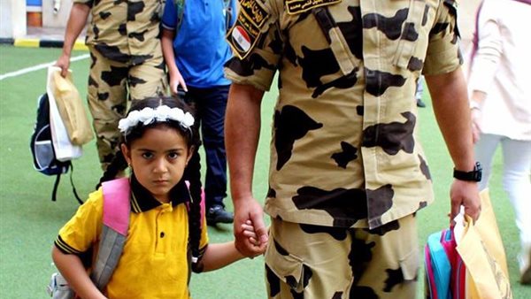عناصر من القوات المسلحة تصطحب أبناء الشهداء فى الأسبوع الأول من المدارس