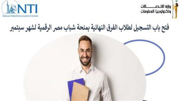 فتح المعهد القومي للاتصالات بالتعاون مع وزارة الاتصالات وتكنولوجيا المعلومات، باب التسجيل للطلاب بمنحة شباب مصر الرقمية من الجامعات والمعاهد العليا في جميع التخصصات، للتأهيل لأسواق العمل المختلفة المصرية والعربية.