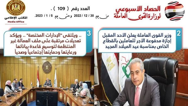 نشرت وزارة القوى العاملة اليوم الجمعة إنفوجرافاً، ينقل للرأي العام، بشكل مُبسط أبرز أنشطة وزارة القوى العاملة خلال الـ7 أيام الماضية