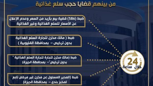 واصلت الإدارة العامة لشرطة التموين والتجارة بالتنسيق مع إدارات وأقسام شرطة التموين وفروعها الجغرافية بمديريات الأمن وقطاع الأمن العام ، حملاتها التموينية المكبرة لضبط الجرائم التموينية أسفرت عن ضبط عدد 1891 قضية تموينية متنوعة من بينها :- ضبط (6) قضايا فى مجال حجب السلع الإستراتيجية بمضبوطات بلغت (97,950