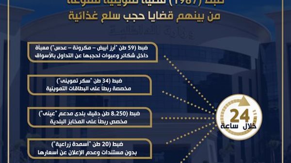 واصلت الإدارة العامة لشرطة التموين والتجارة بالتنسيق مع إدارات وأقسام شرطة التموين وفروعها الجغرافية بمديريات الأمن وقطاع الأمن العام ، حملاتها التموينية المكبرة لضبط الجرائم التموينية أسفرت عن ضبط عدد 1987 قضية تموينية متنوعة من بينها :- ▪️ ضبط (4) قضايا بيع بأزيد "أرز أبيض" بمضبوطات بلغت (2,785 طن