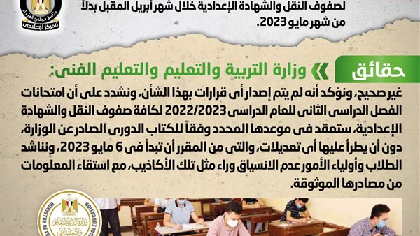 تداولت بعض المواقع الإلكترونية وصفحات التواصل الاجتماعي أنباء بشأن صدور قرار بتقديم موعد عقد امتحانات الفصل الدراسي الثاني لصفوف النقل