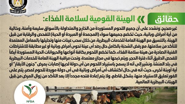تداولت بعض المواقع الإلكترونية وصفحات التواصل الاجتماعي أنباء تزعم استيراد شحنات لحوم مصابة بجنون الأبقار وطرحها بالأسواق